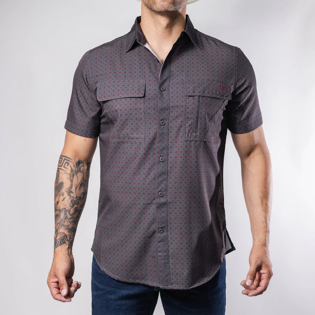 Camisa Platini, Estilo Pescador, Estampado, Color Gris, Performance Ligera y Transpirable, Control de Olores, Absorcion y Sistema de Ventilacion Trasera, Secado Rapido, Detalle en Aletilla interior parte baja para limpiar sus lentes, Botones, Manga Corta, Stretch, Material 88% Poliester y 12% Spandex, Corte Regular, SKU# PLA1060 *Modelo Mide 1.80, pecho 1.12 mts y usó talla M