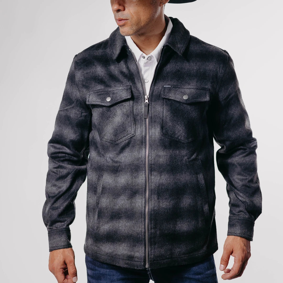 Camisola Vaquera Rock&Roll, Color Negro/Gris, Cuadros, Zipper, Bolsas Laterales, Bolsas con broches en el pecho, Material 70% Poliéster, 20% Acrylic y 10% Viscose, SKU# ROC1023, *Modelo Mide 1.80, pecho 1.12 mts y uso talla M