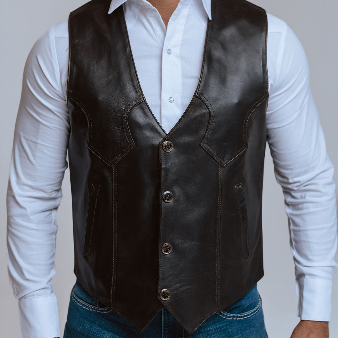 Chaleco Very Vaquero, Piel Borrego Pelibuey, Liso, Exterior Piel Pelibuey, Forro Poliéster, Broches de presión, Corte Regular, SKU# VVC1002, *Modelo mide 1.80, Pecho 102cm y uso talla M