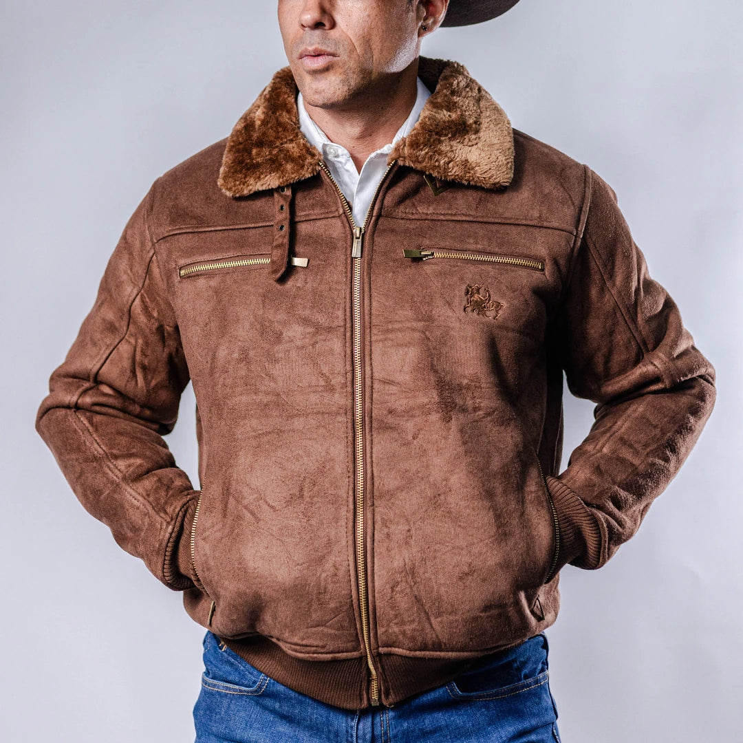 Chamarra Polo Retro, Tipo Marlboro, Modelo Derek, Color Café, Bolsas Frontales, Bolsas Laterales, Zipper Metálico Frontal, Tela tipo Gamucina, Forro Sintético Suave, Material 100% Poliéster, SKU # PLR1005
