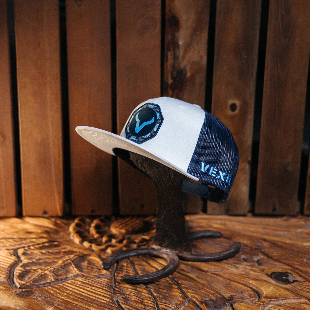 Gorra Vexil, Color Blanca, Logo Azul, Material 65% Poliester y 35% Algodón, Gorra de Camionero, Malla Color Negro, SKU# VVI1006193