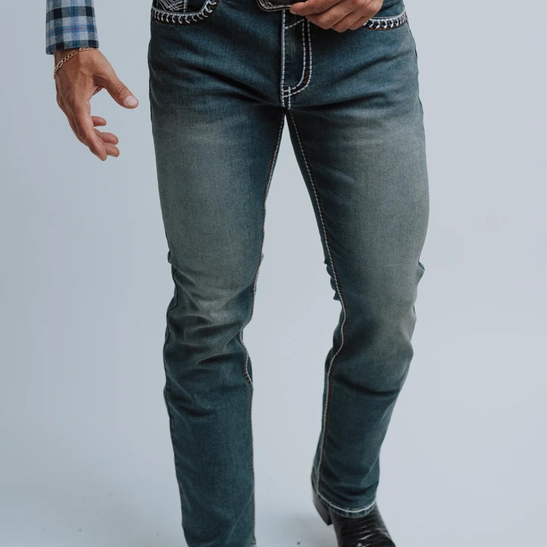Pantalón McAllen Importado, Modelo Albana, Color Dirtyblu, Mezclilla, Materiales 97% Algodón y 3% Spandex, stretch, SKU# MC31010 *Modelo mide 1.80 mts y uso Talla 32