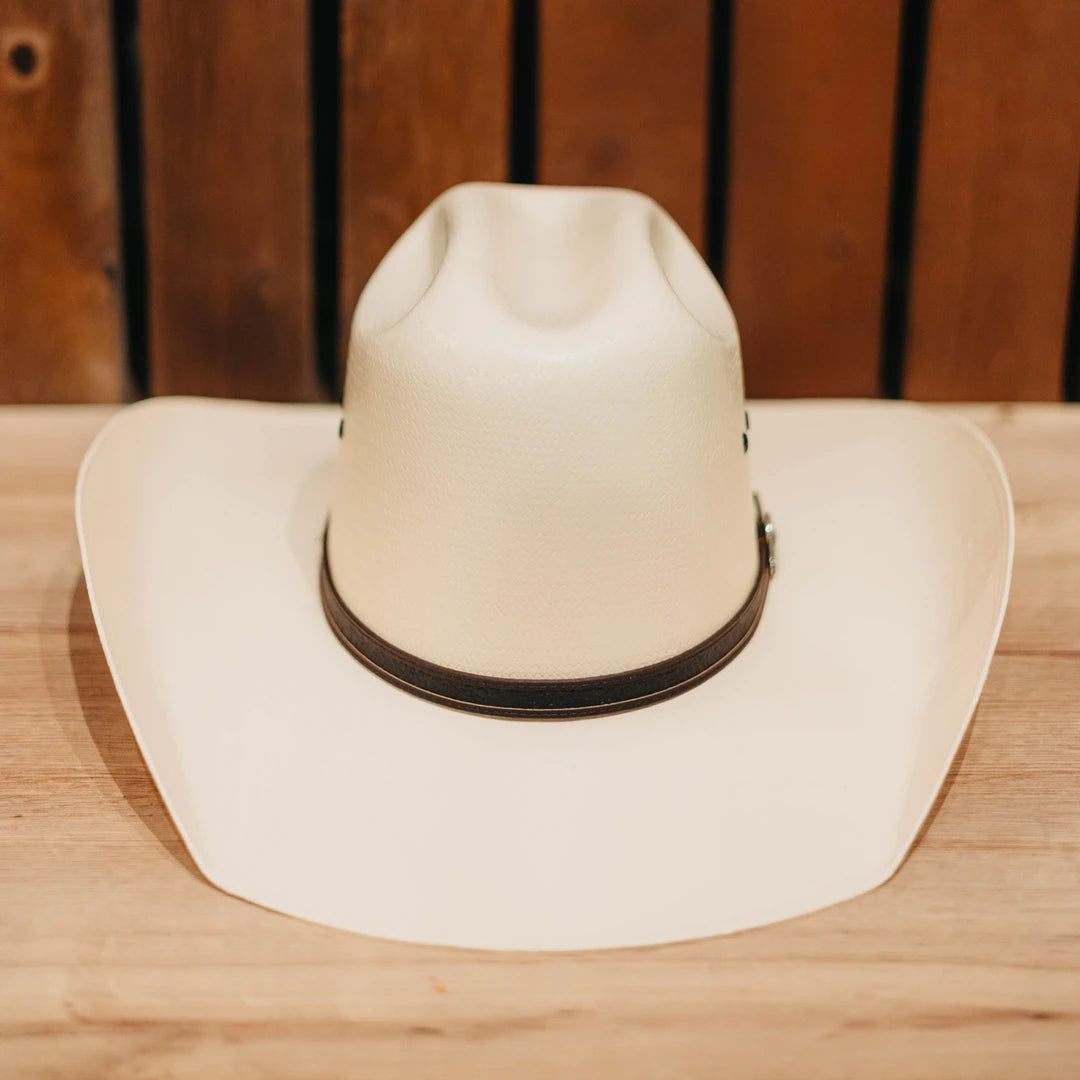 Sombrero Tombstone, Horma-Ranger, Cerrado, Color Blanco, Laqueado, Calidad 15X, Toquilla Vinipiel Color Negro, Falda 11 cm, Copa 13 cm, SKU# TOM1105 *Nota.- Medidas Aproximadas