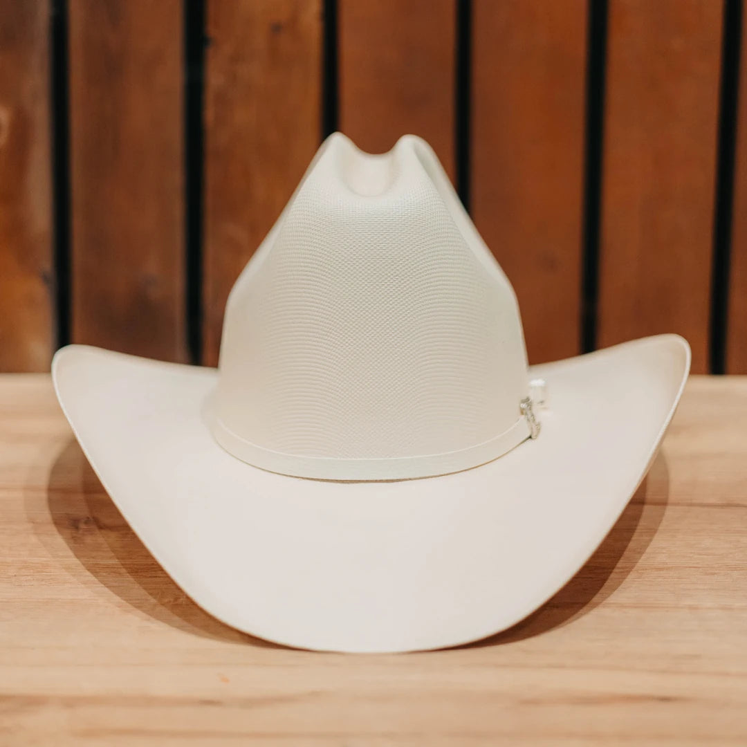 Sombrero Tombstone, Horma-Sonora, Telar, Cerrado, Color Blanco, Calidad 1000X, Toquilla al tono, Falda 10.5 cm, Copa 13...