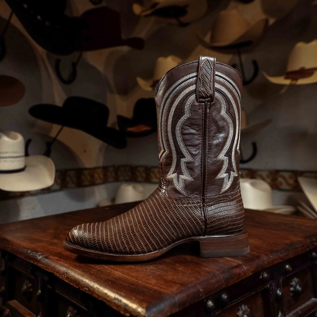 Bota Tejano Style, Piel Vacuno, Grabado Premium Replica Lizard, Forro Vacuno, Horma-Tacoma, Color Teco Brown, Suela Cuero, Altura tubo: 29 cm, Altura tacon alto : 3 cm (medidas aproximadas), SKU# TEJ1066
