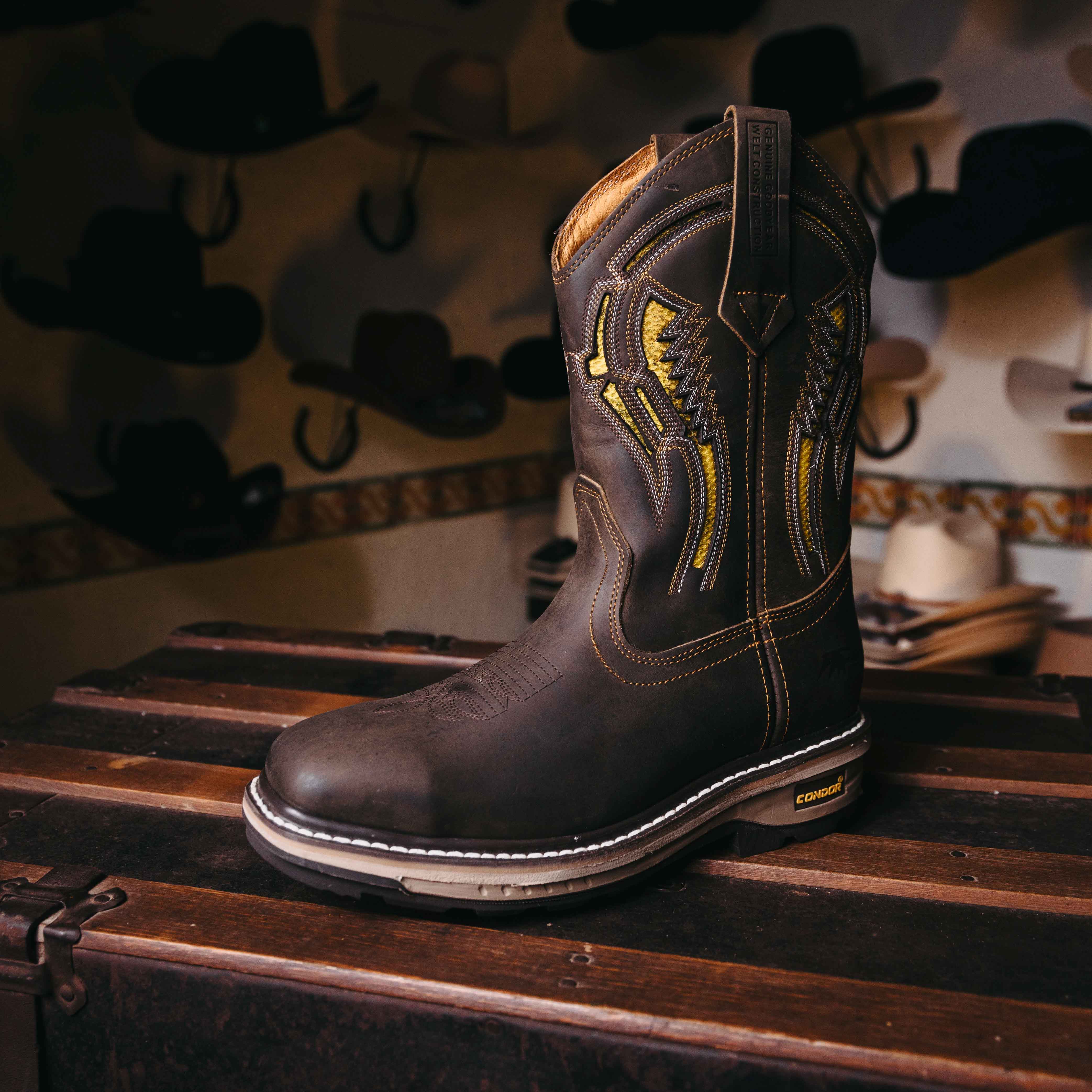 Bota Condor de Trabajo, Piel Vacuno, Forro Vacuno, Color Café, Punta Acero para Mayor Protecciòn, Suela Antiderrapante Resistente al Aceite, Plantilla Transpirable Removible, Altura Tubo: 21 cm, Altura tacon: 3.5 cm (medidas aproximadas), SKU# BCO1008