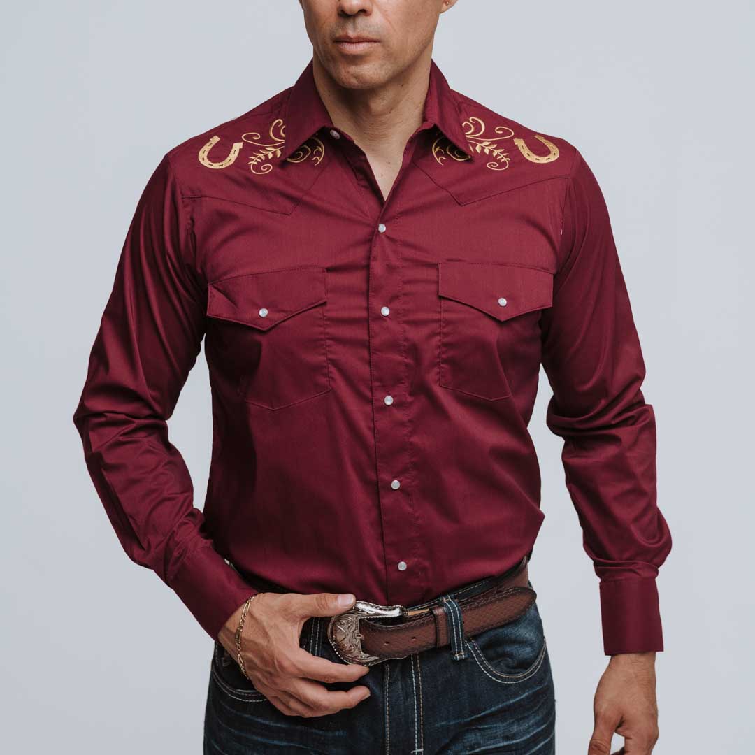 Camisa Hannover, Manga Larga, Estilo: Bordada, Stretch, Herradura, Broches de presi¢n, 65% Poliester 35% Algod¢n, Corte Regular, SKU# HAN1213, *Modelo Mide 1.80, Pecho 102cm y uso talla M