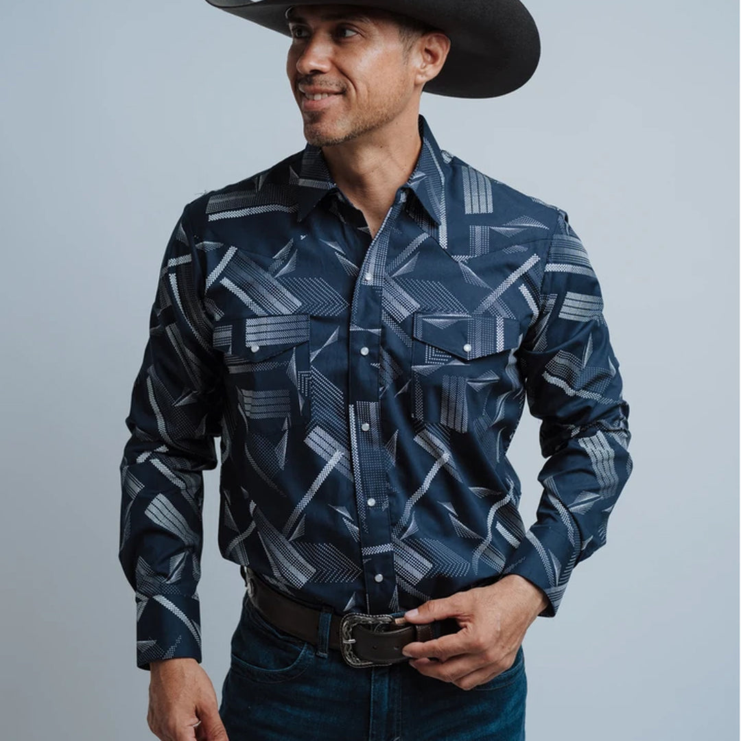 Camisa Hannover, Estampado Puntos, Color Azul/Blanco, Manga Larga, Broches de presión, Materiales 100% Algodón, Corte Regular, SKU# HAN1330, *Nota: Las Camisas Hannover para caballero tienen corte amplio, le sugerimos revisar la tabla de medidas o llamarnos para cualquier duda, *Modelo Mide 1.80, pecho 1.12 mts y uso talla M