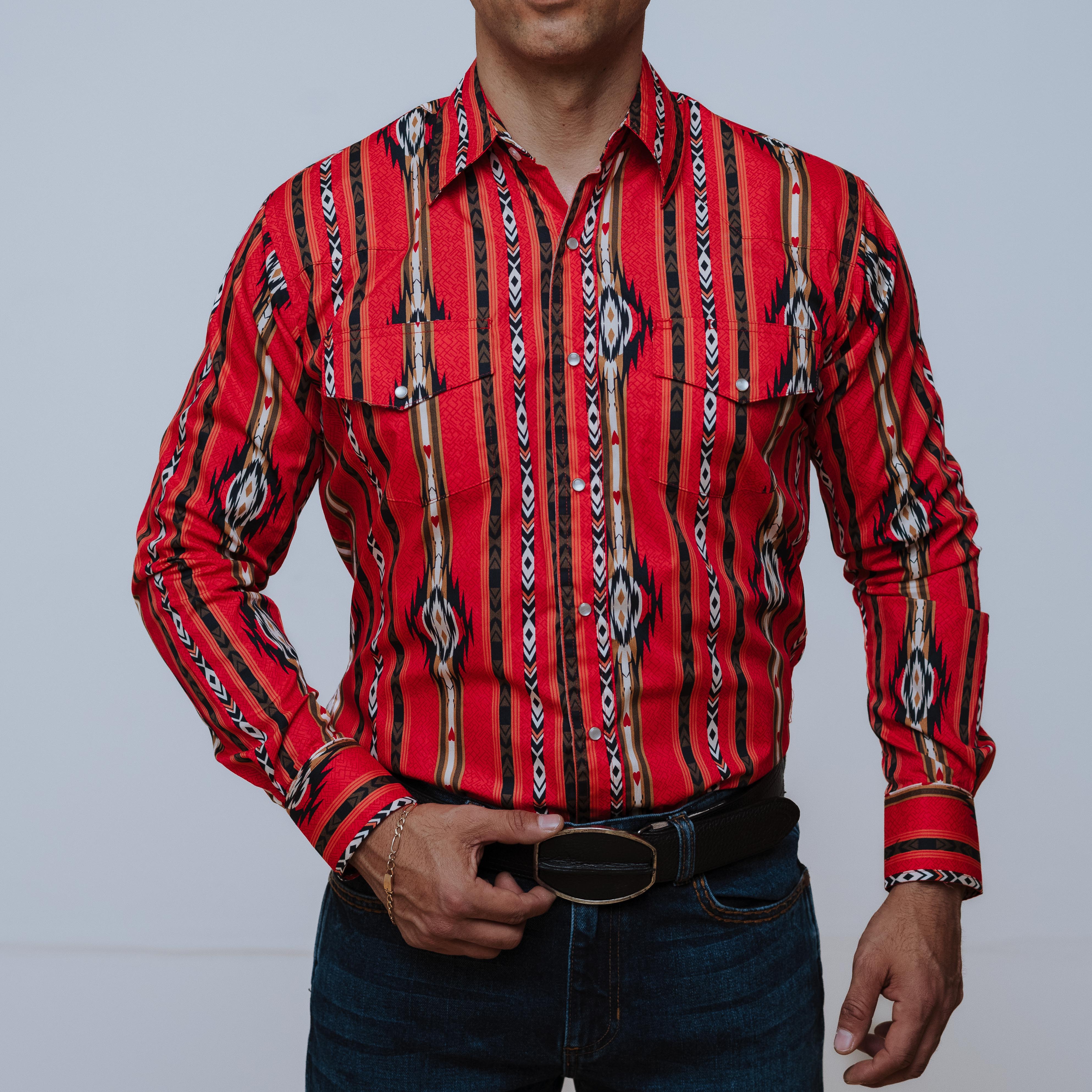Camisa Vaquera Wrangler, Checotah, Roja, Manga Larga, Broches de presión, 100% Algodón, Corte Regular, SKU# WR21184, *Modelo...