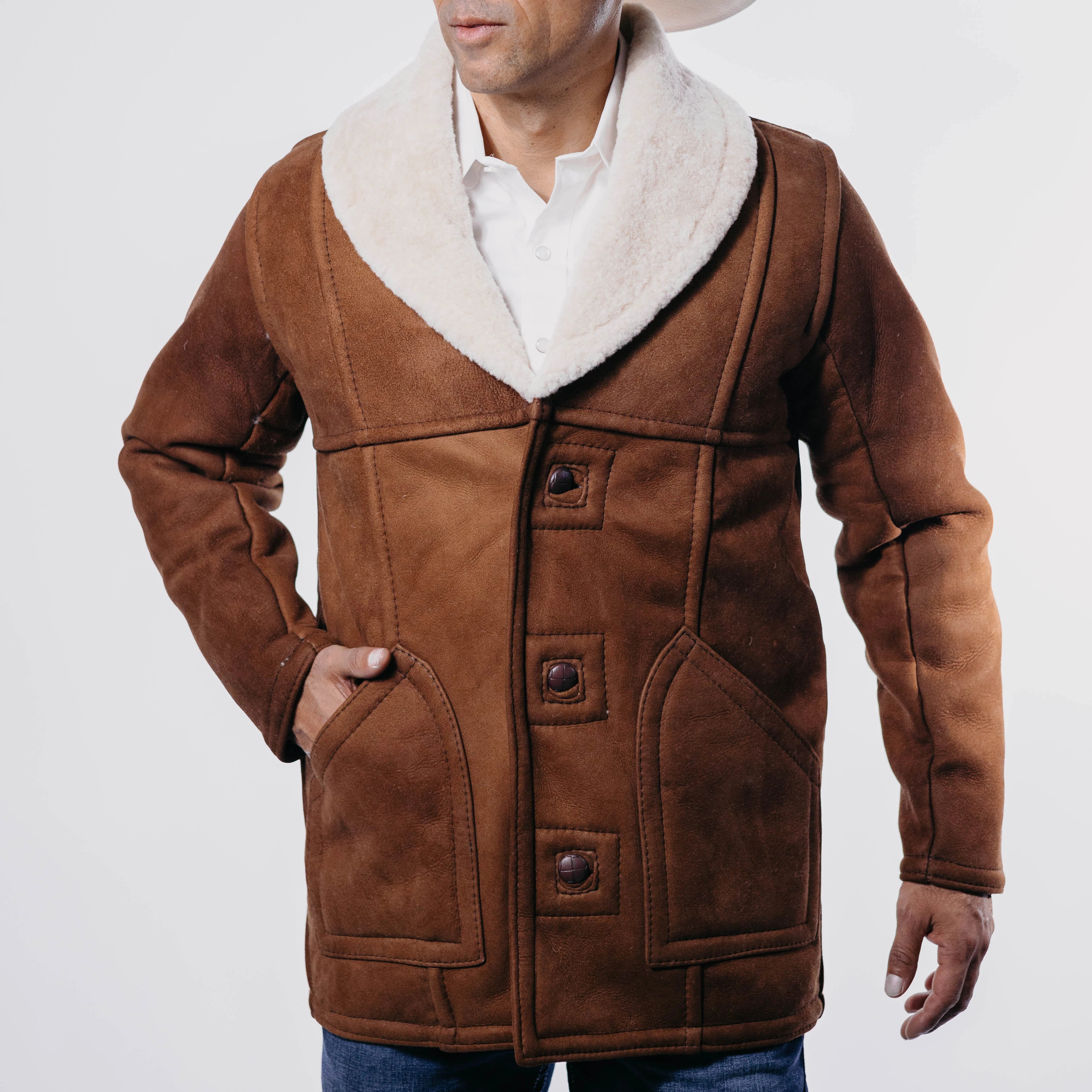 Chamarra Very Vaquero, Modelo Malboro, Material Ante, Forro Borrego Natural, Liso, Botones, Bolsas 2 frotales y una interior, SKU# VVC1037, Modelo Mide 1.80, Pecho 102cm y uso talla M, (Modelo opcion a Pedido Especial favor de comunicarse con nosotros)