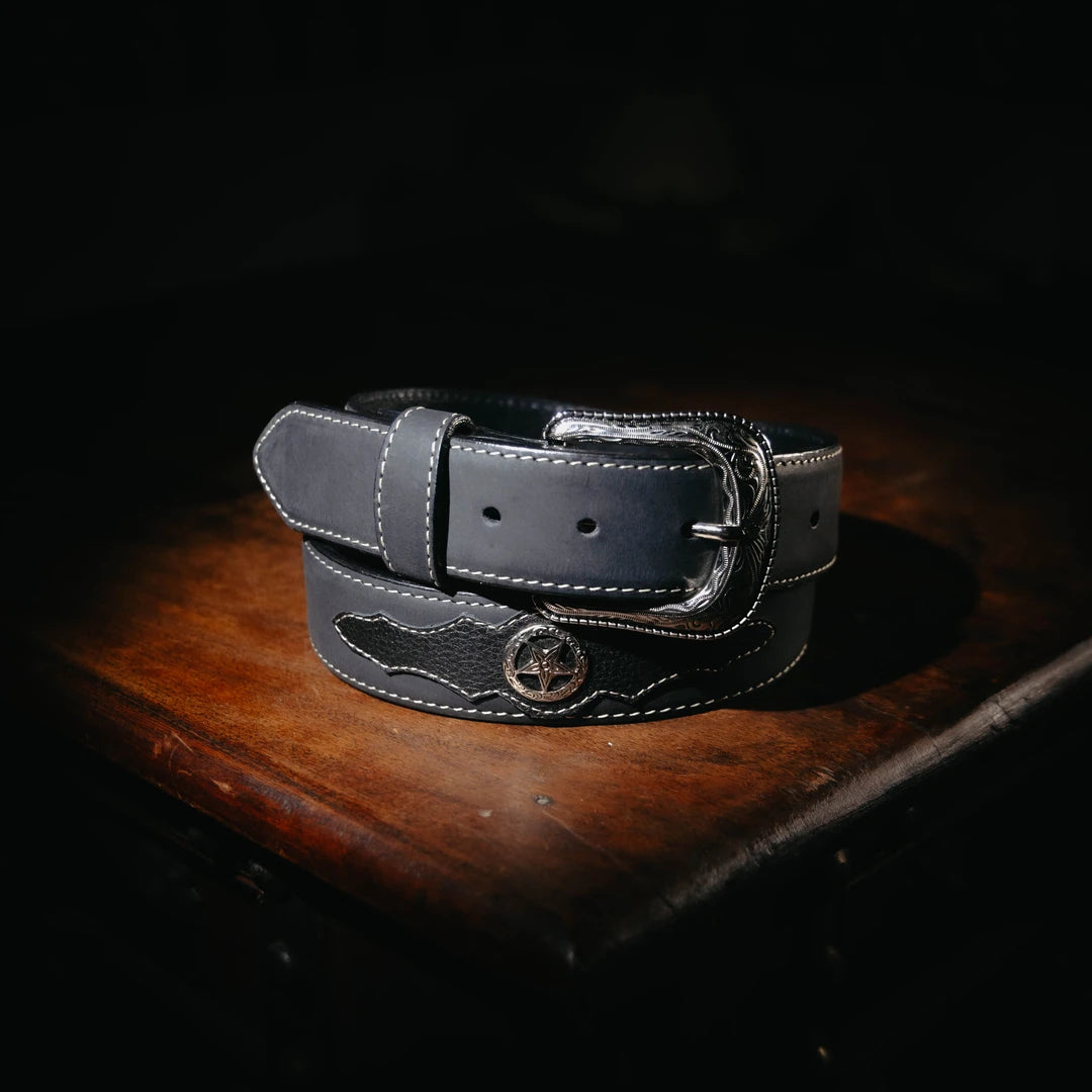 Cinto 3 Compadres, Piel Vacuno, Forro Vacuno, Color Negro, Aplicación sheriff, Hebilla Metalica Desmontable, 35mm (Medidas aproximadas), SKU# TCO1011