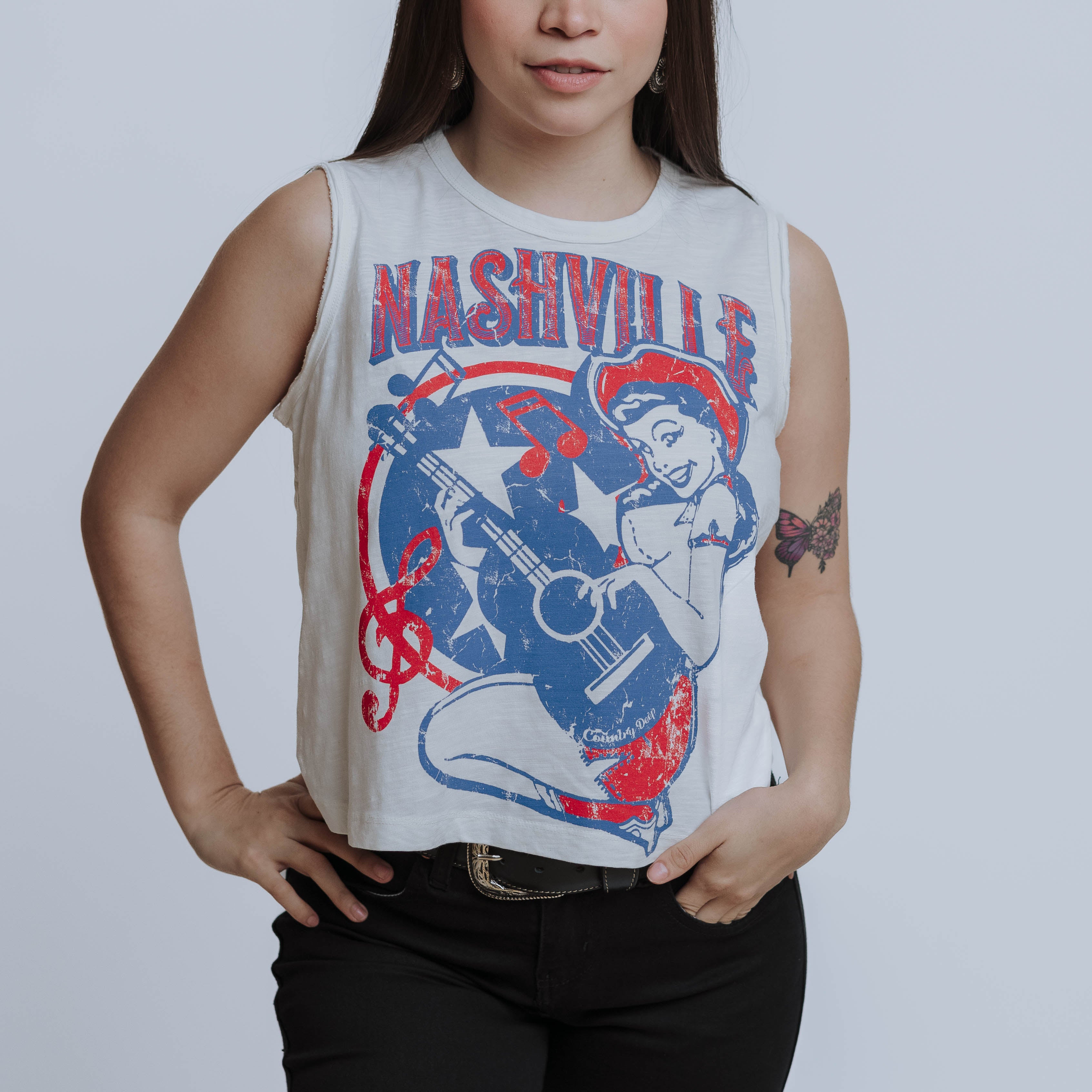 Crop Top Country Deep Nashville White 007