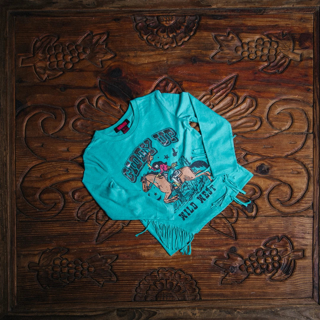 Playera Rock&Roll, KIDS, Color Turquesa, Manga Larga, Flecos, Material 60% Algodón y 40% Poliester, SKU# ROC4001