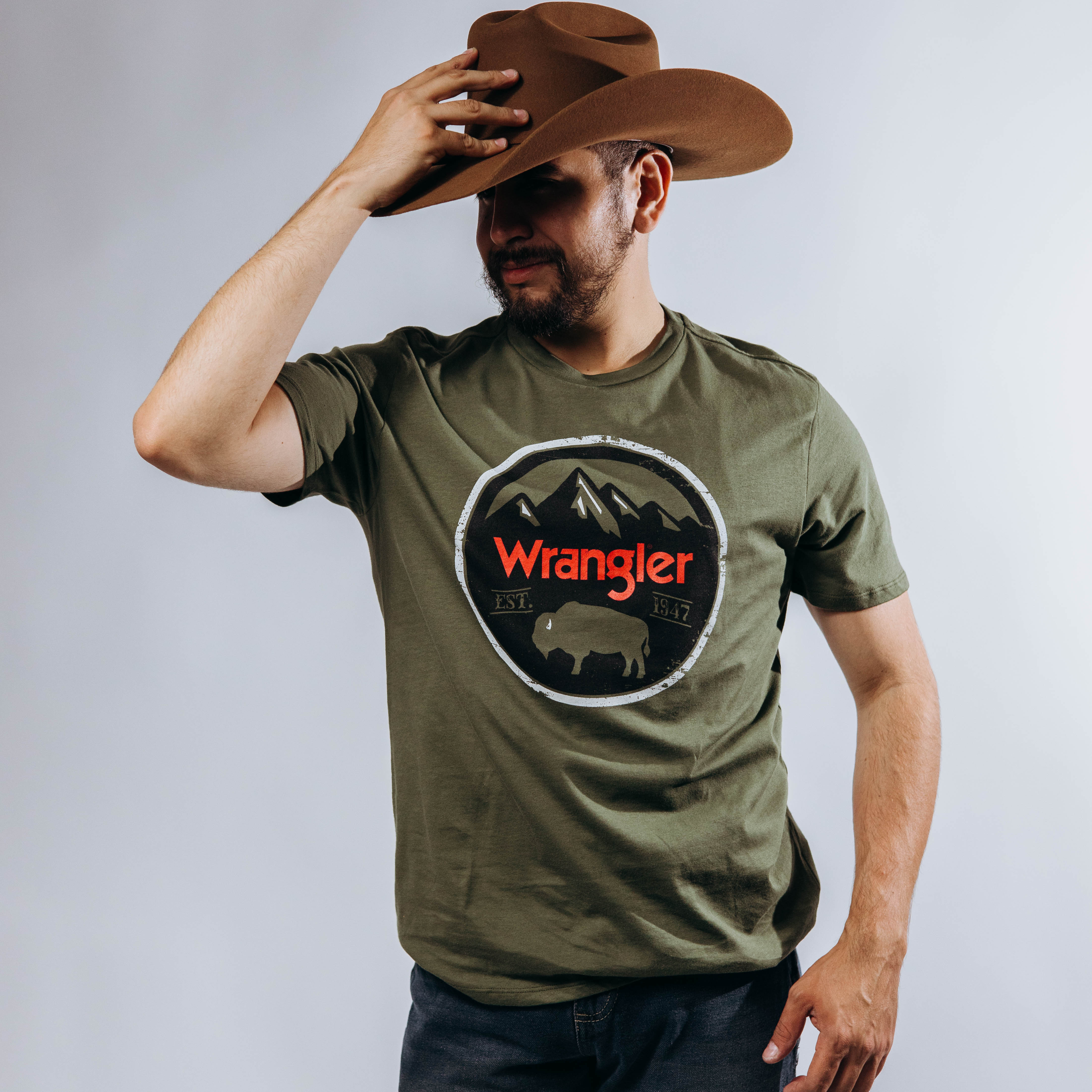 Playera Wrangler, Mont, Color Verde, Manga Corta, Corte Regular, Material 100% Algodón, SKU# WR21223