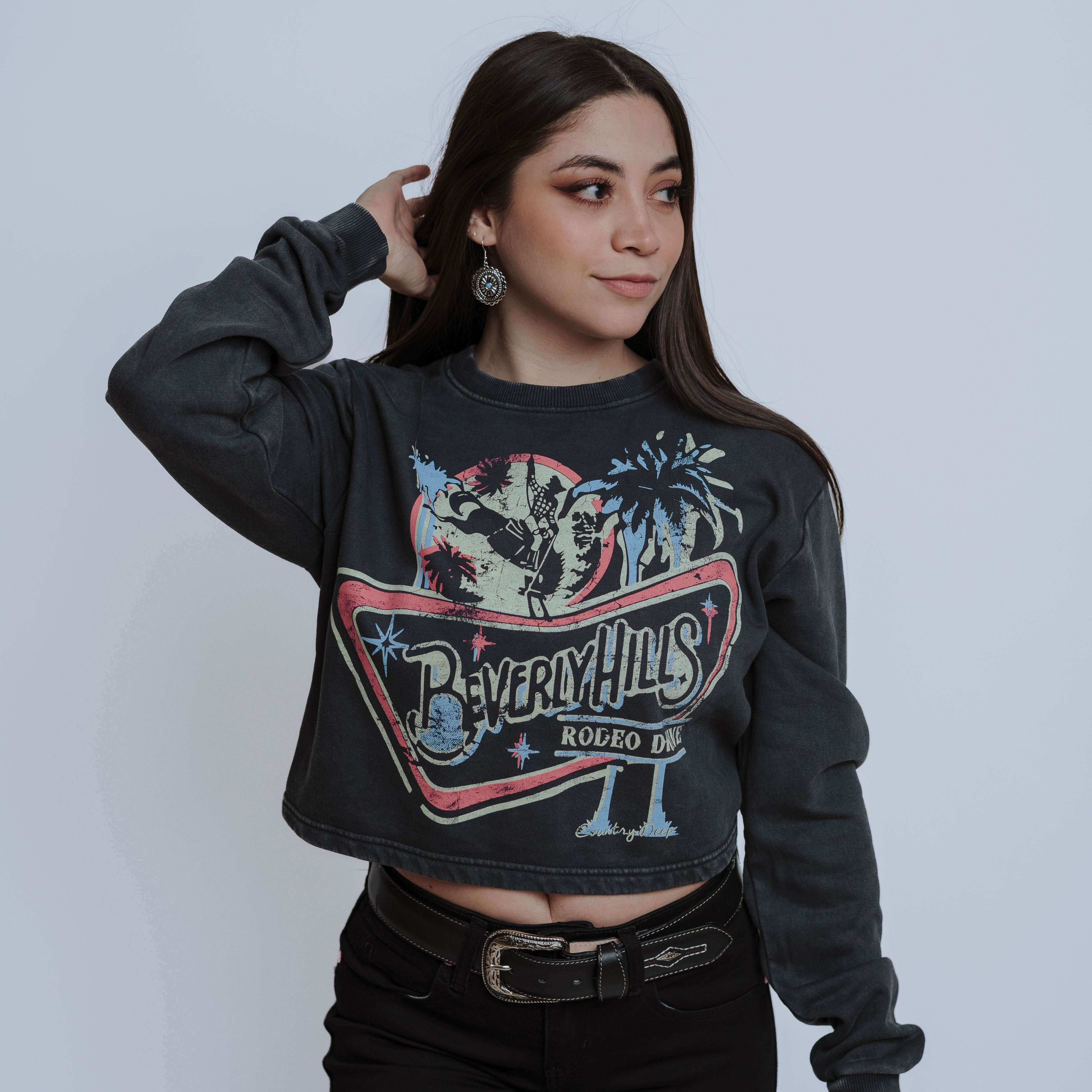 Sudadera Vintage Country Deep, Diseñada e Impresa a Mano por artistas de Arkansas USA, Con Proceso y Acabado Efecto Vintage que hace que cada pieza sea unica, Beverly Hills, 100% Algodón, SKU# DEE2010, *Modelo Mide 1.55, pecho 87cms y uso talla S
